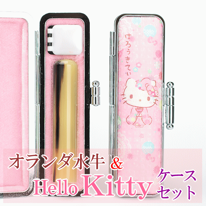 天然素材で高級印鑑素材のオランダ水牛に、とってもかわいいハローキティの印鑑ケースをセットにしてご提供致します。